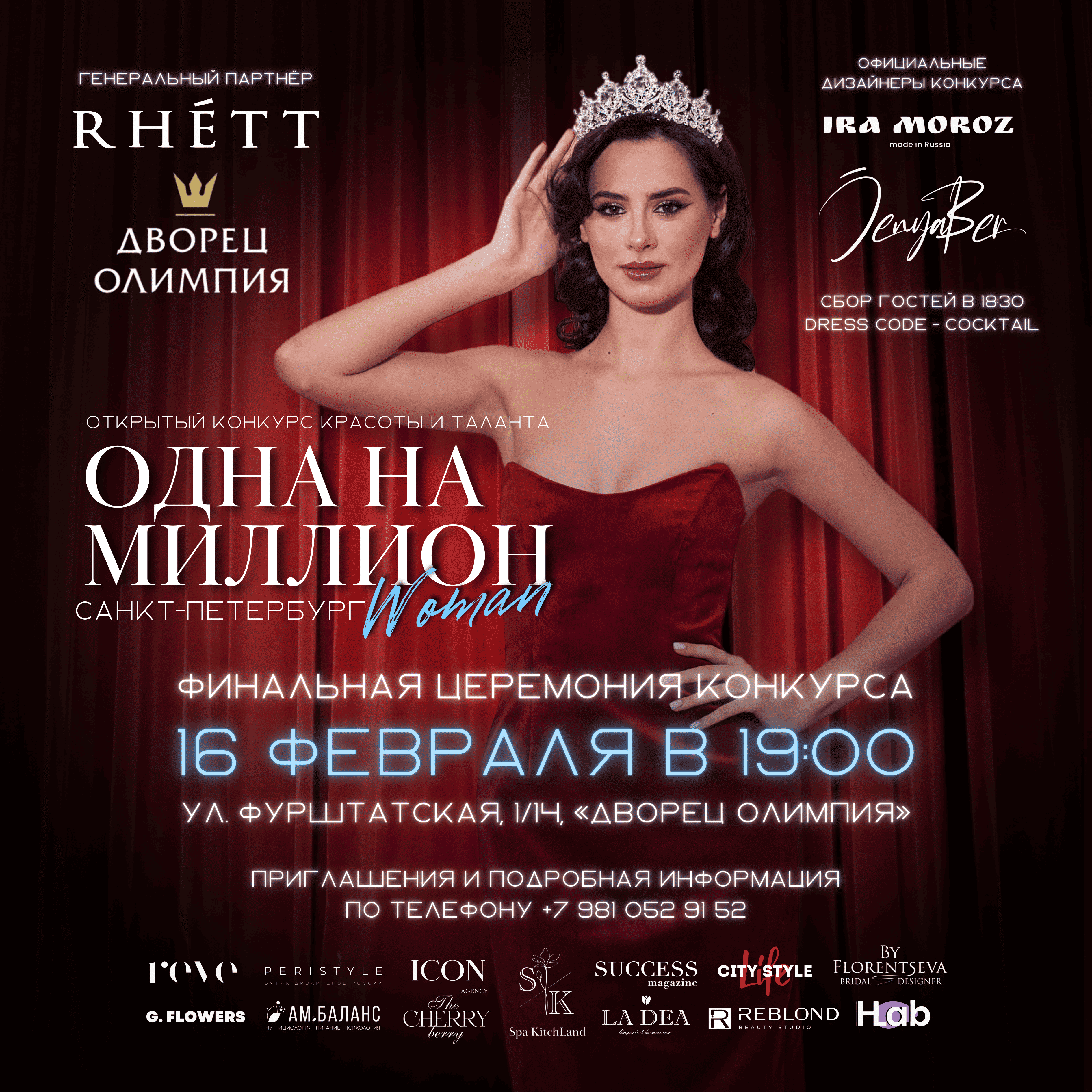 16 ФЕВРАЛЯ В 19:00 СОСТОИТСЯ ФИНАЛЬНАЯ ЦЕРЕМОНИЯ КОНКУРСА «ОДНА НА МИЛЛИОН Woman»!
